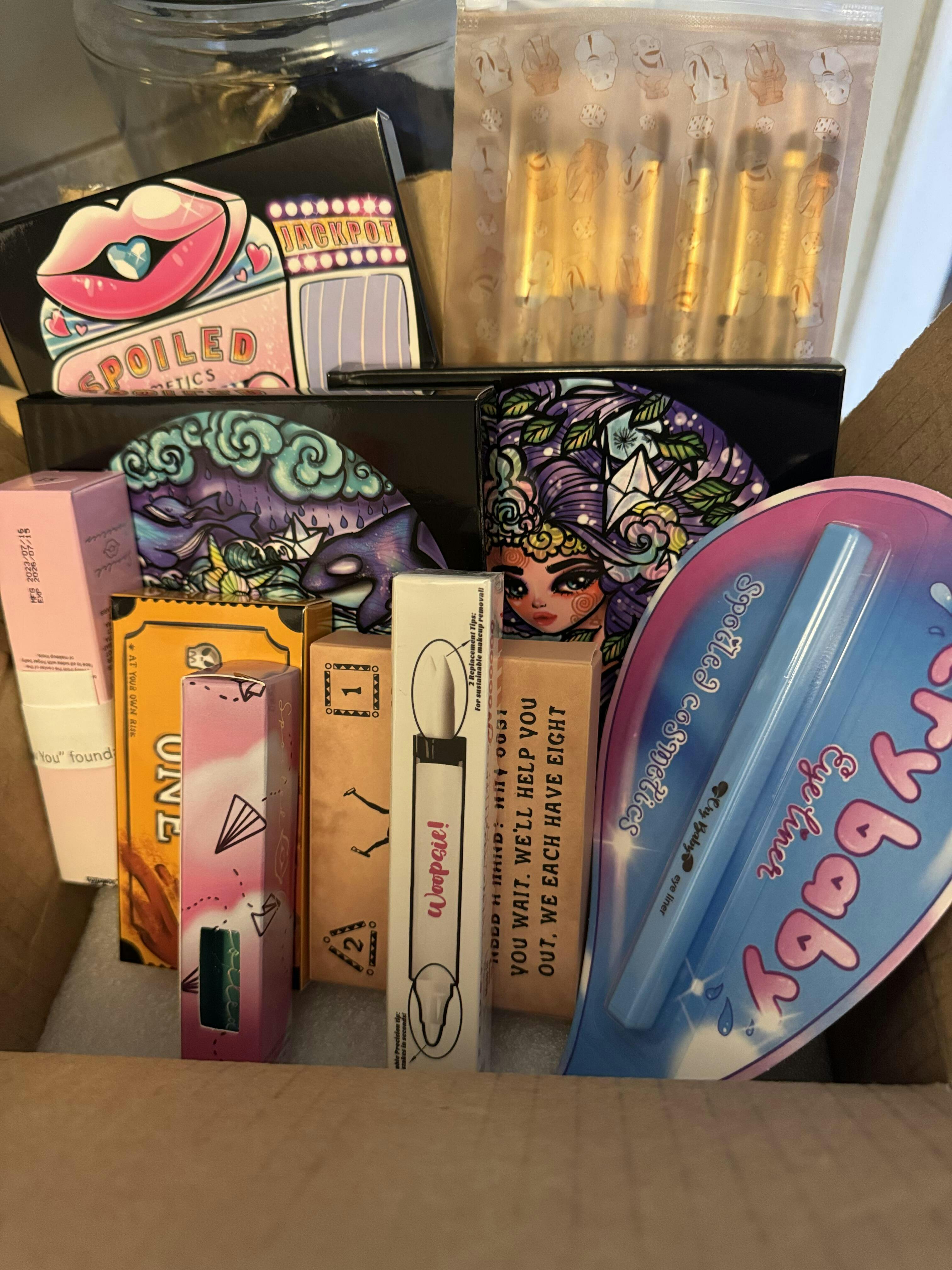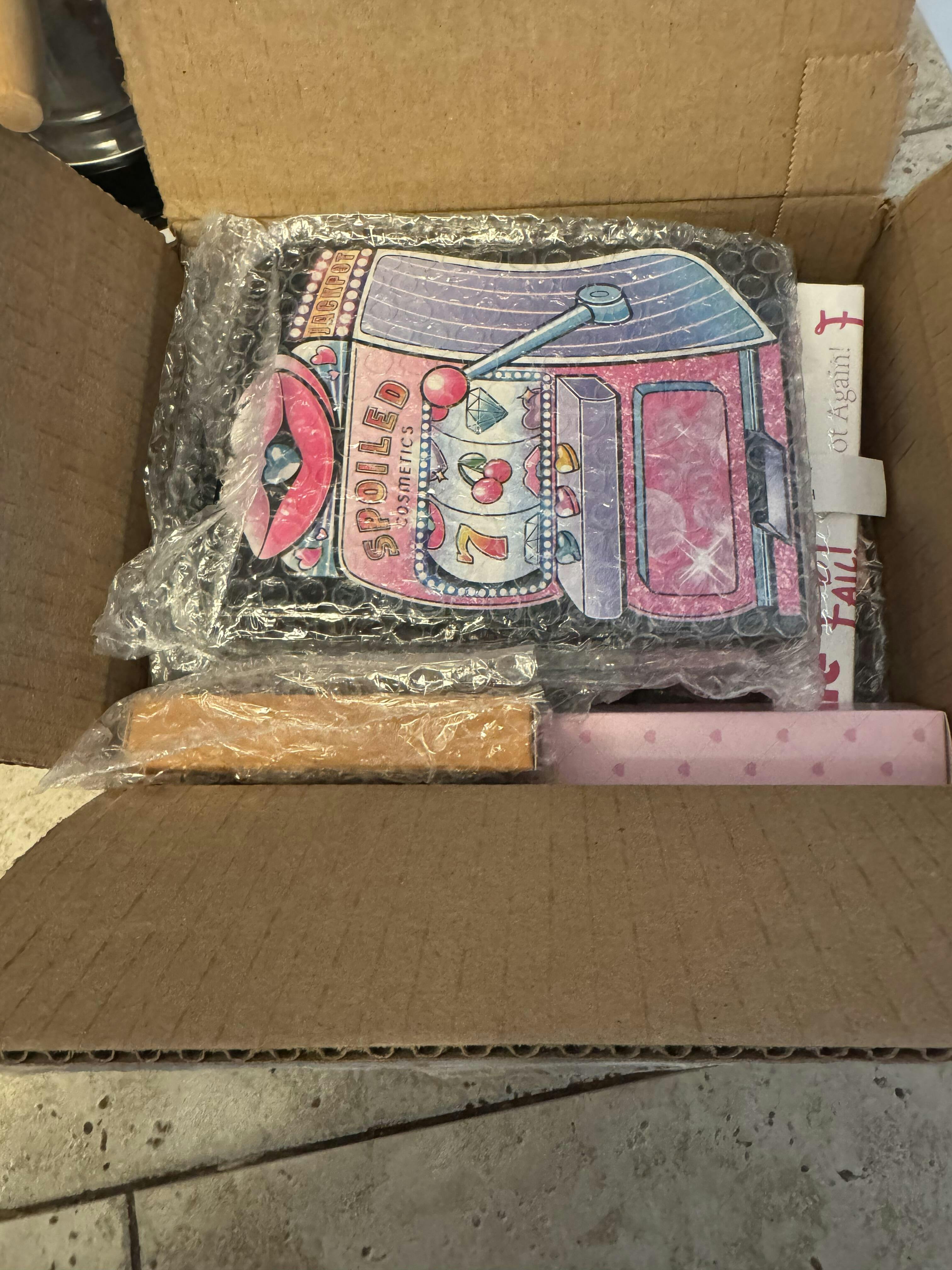The mystery box was filled with lots of eyeshadow palettes I already had, and a foundation that was the darkest color they make. Its too dark to even use as contour. Had they sent me a lighter or even tan foundation I could have made it work, but this, too dark...in the garbage it went. Now if I want to buy another in my color, it's $30. So ill NEVER buy a mystery box ever again. It was a major disappointment and full of useless things for me. I asked if I could send back the foundation to just exchange for a diff color so I could actually use it and the request was denied . So they have now lost a customer. I was willing to pay the shipping back and back to me and all I wanted was an exchange and it was denied.